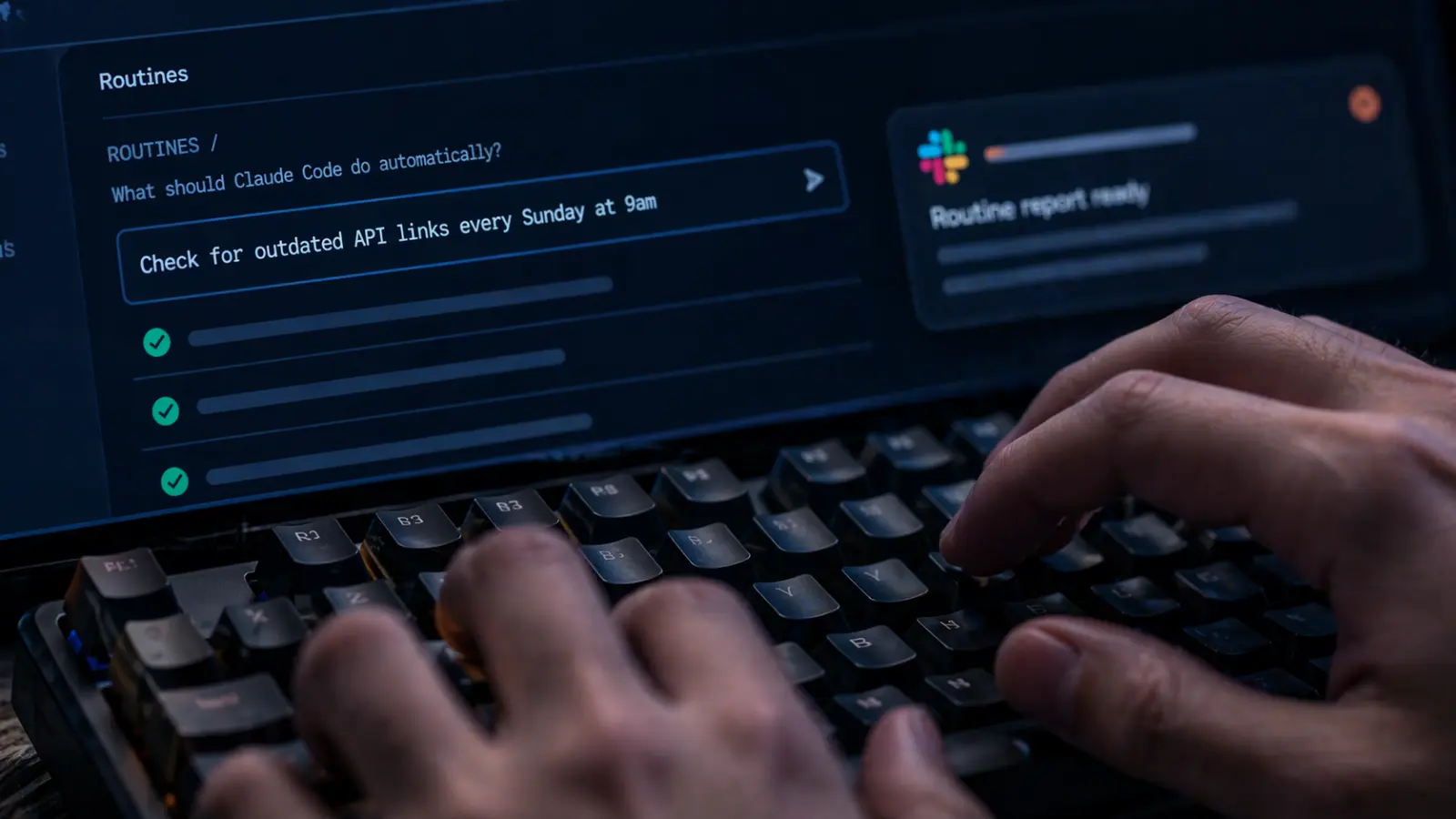 Svarbiausia suprasti, kur konkrečiai dingsta darbo valandos. Naktinė klaidų tvarkymo rutina paima aukščiausio prioriteto klaidą iš „Linear" antrą valandą nakties, bando ją ištaisyti ir prieš rytą atveria juodraštinį pull request. Savaitinė dokumentacijos peržiūra išnagrinėja visus failus, suranda nuorodas į pasenusius API ir automatiškai siūlo pakeitimus.