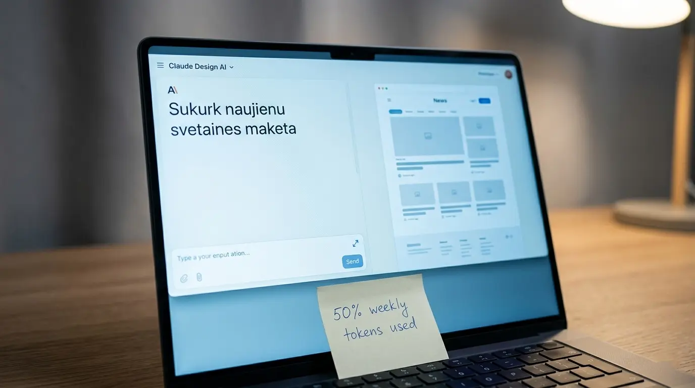 Tačiau yra vienas svarbus niuansas. „Claude Design" turi savaitines naudojimo ribas mokamame plane, o sistema yra gana reikli tokenų atžvilgiu. Vienas žurnalistas, sukūręs dizaino sistemą ir naujienų svetainės prototipą, sunaudojo daugiau nei 50% savo savaitinės normos. Ją pasiekus, toliau mokama pagal vartojimą.